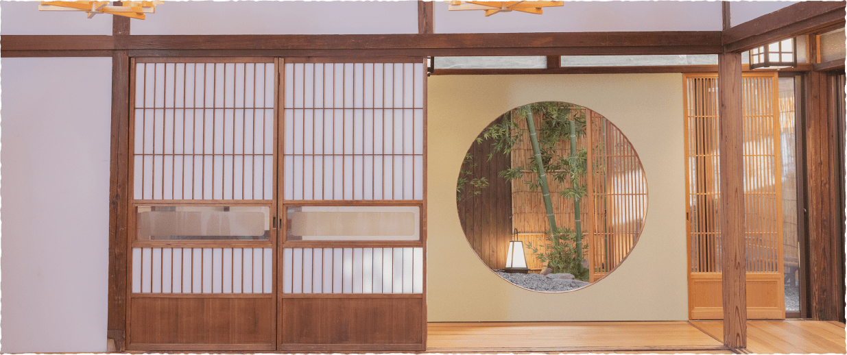 ふすまは入れ替え、全て撤去することができます。入れ替え位置は自由にお決め頂けます。また雨戸で日中の日差しを大部分遮光することも可能です。