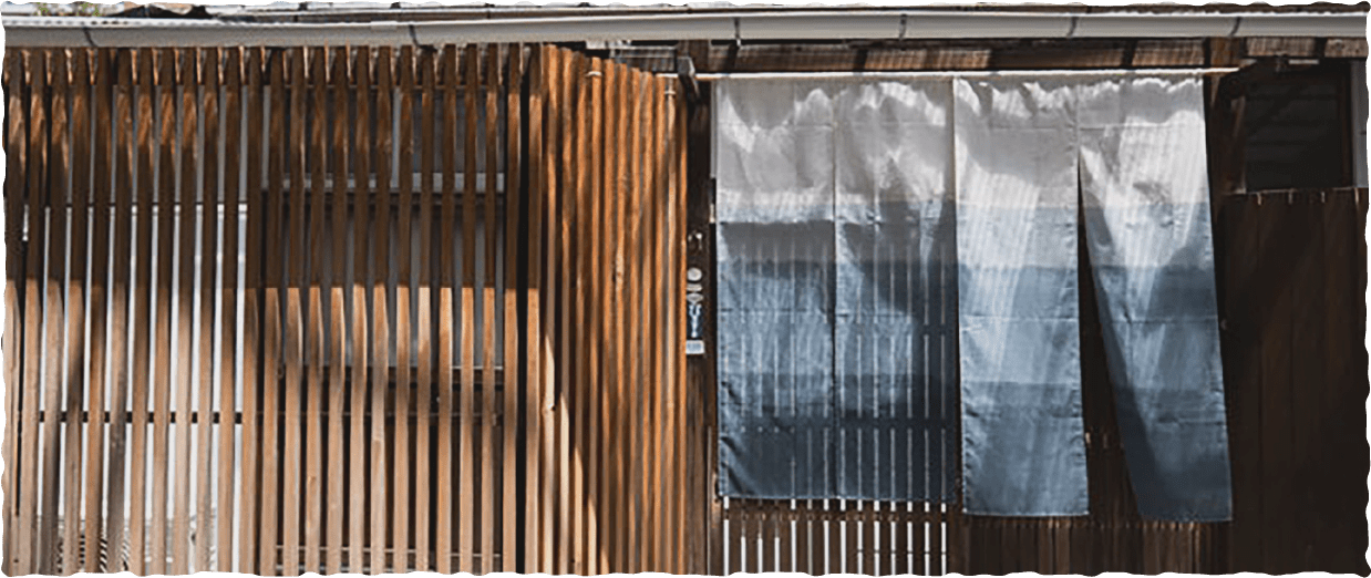 Sereno邸のロゴが入った門扉が目印です。暖簾がかかっている所からお入りください。